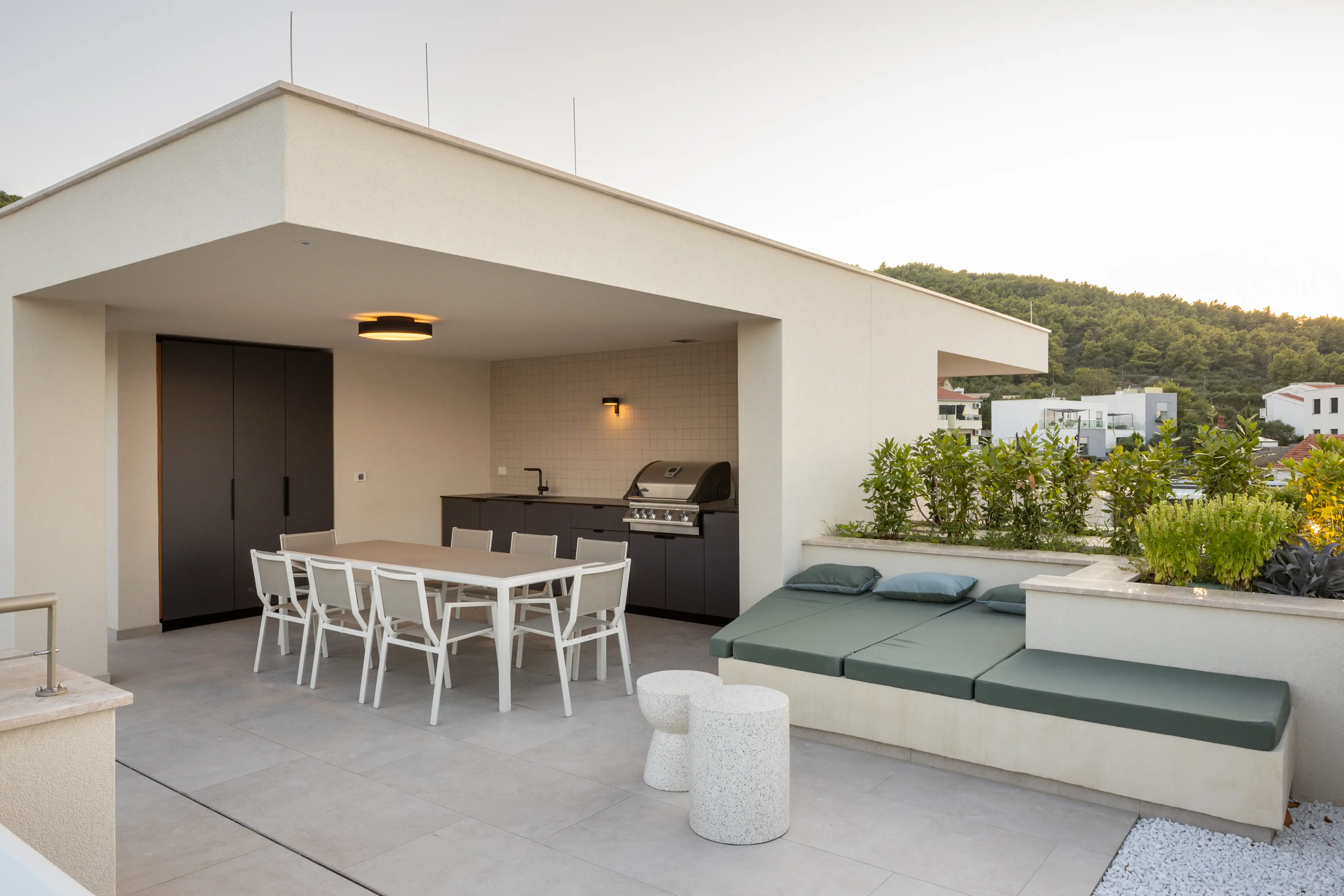 Seaview Villa G offers an exclusive, luxurious retreat positioned directly on the beach in Slatine, Dalmatia. This property provides 220m² of contemporary, air-conditioned living space, meticulously designed for discerning families or small groups, accommodating up to six adults and two children. Th...